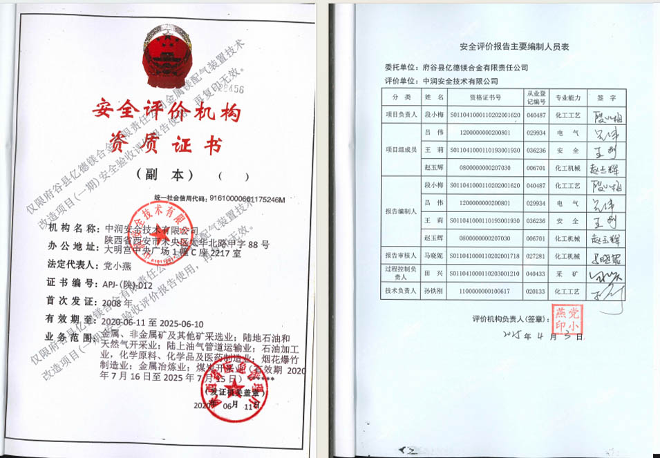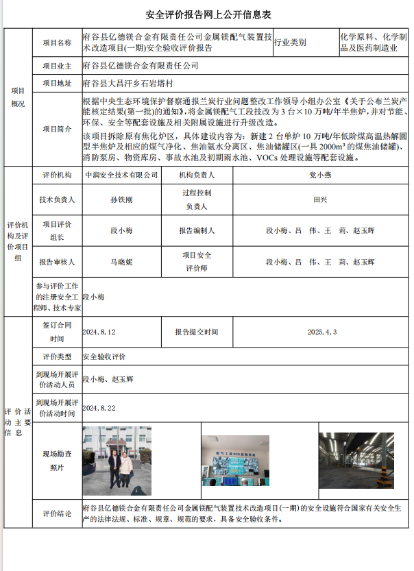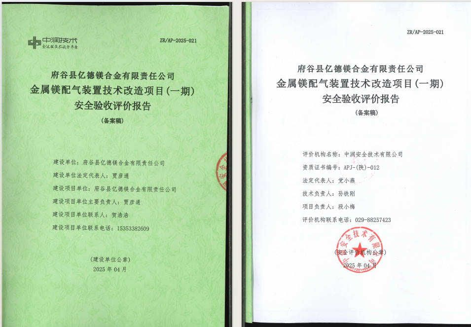 府谷縣億德鎂合金有限責(zé)任公司金屬鎂配氣裝置技術(shù)改造項(xiàng)目(一期)安全驗(yàn)收評(píng)價(jià)報(bào)告
