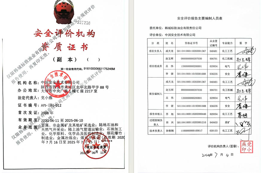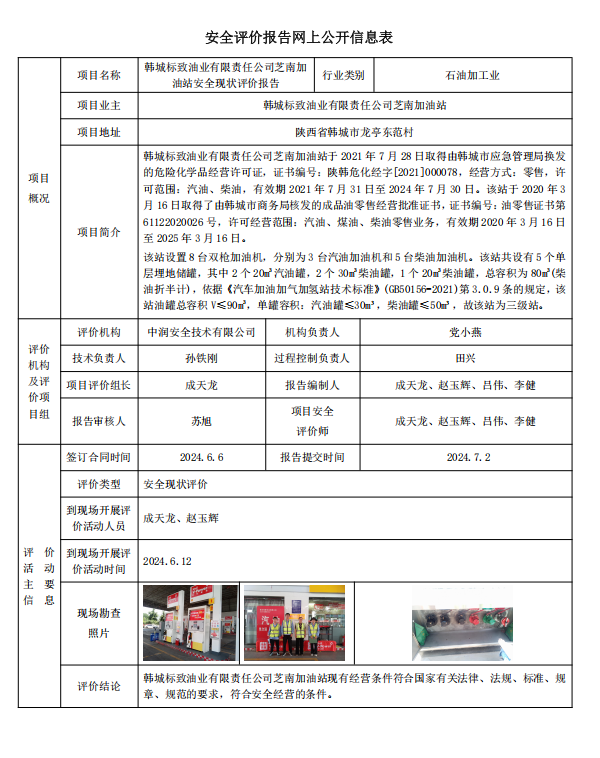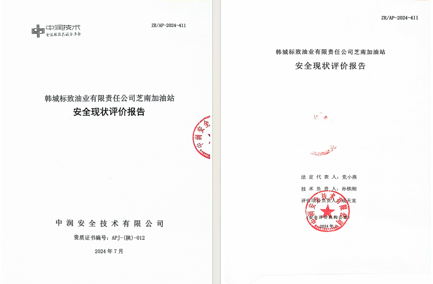 韓城標(biāo)致油業(yè)有限責(zé)任公司芝南加油站安全現(xiàn)狀評(píng)價(jià)報(bào)告