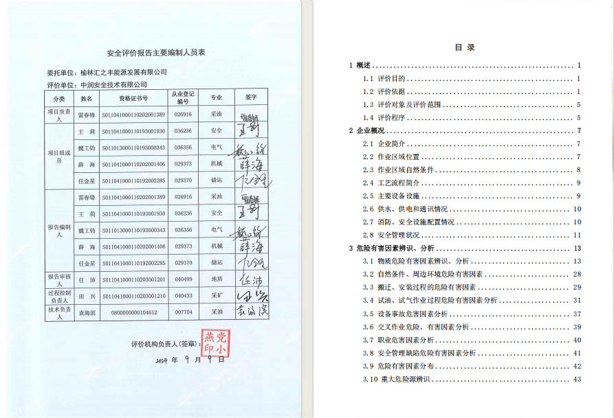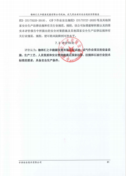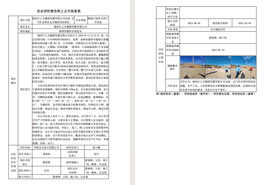榆林匯之豐能源發(fā)展有限公司試油、試 氣作業(yè)項(xiàng)目安全現(xiàn)狀評(píng)價(jià)報(bào)告